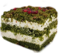 biszkopt szpinakowy, śmietana kremówka, mascarpone