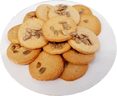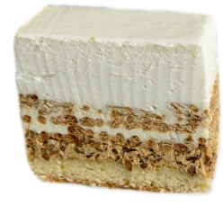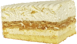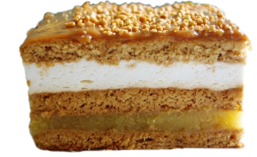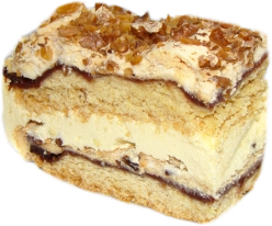 biszkopt jasny, masa karmelowa z prażonym słonecznikiem, śmietana kremówka