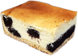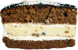 ciasto piernikowe, masa śmietankowa, blat serowy z bakaliami