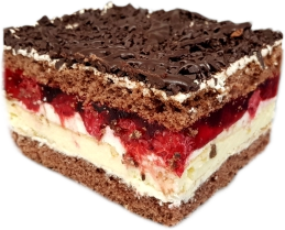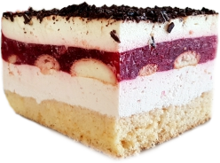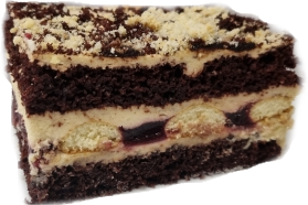 biszkopt czekoladowy, konfitura porzeczkowa, masa serowa, śmietana kremówka