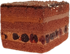 biszkopt czekoladowy, biszkopt jasny, masa czekoladowa, kawałki czekolady, wiśnie, bakalie, alkohol