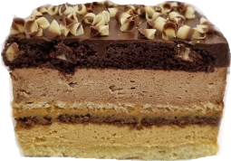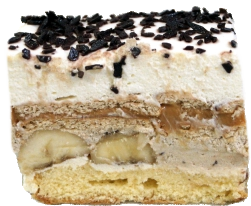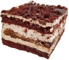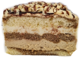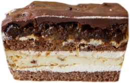 biszkopt czekoladowy, biszkopt orzechowy, masa karmelowa, masa śmietankowa z kawałkami czekolady