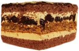 biszkopt orzechowy, masa kawowa, beza, wiśnie, alkohol