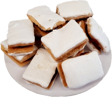 jasny biszkopt, jabłka, herbatniki, masa karmelowa, pianka cytrynowa, kremówka