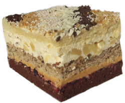 biszkopt czekoladowy, biszkopt jasny, biszkopt orzechowy, masa budyniowa z gruszkami, konfitura porzeczkowa, masa karmelowa