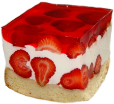 biszkopt jasny, pianka truskawkowa, mus truskawkowy