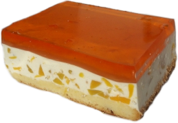biszkopt jasny, masa jogurtowa, brzoskwinie, galaretka