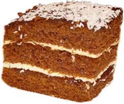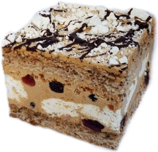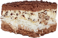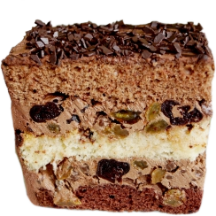 biszkopt czekoladowo-orzechowy, biszkopt kokosowy, masa czekoladowo-kawowa, masa śmietankowa z czekoladkami i bakaliami