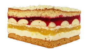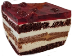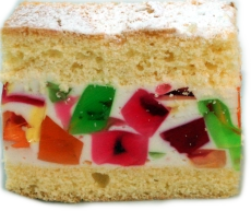 biszkopt jasny, masa śmietanowa z kawałkami galaretki o różnym smaku