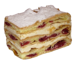 ciasto półfrancuskie, wiśnie, masa śmietankowa